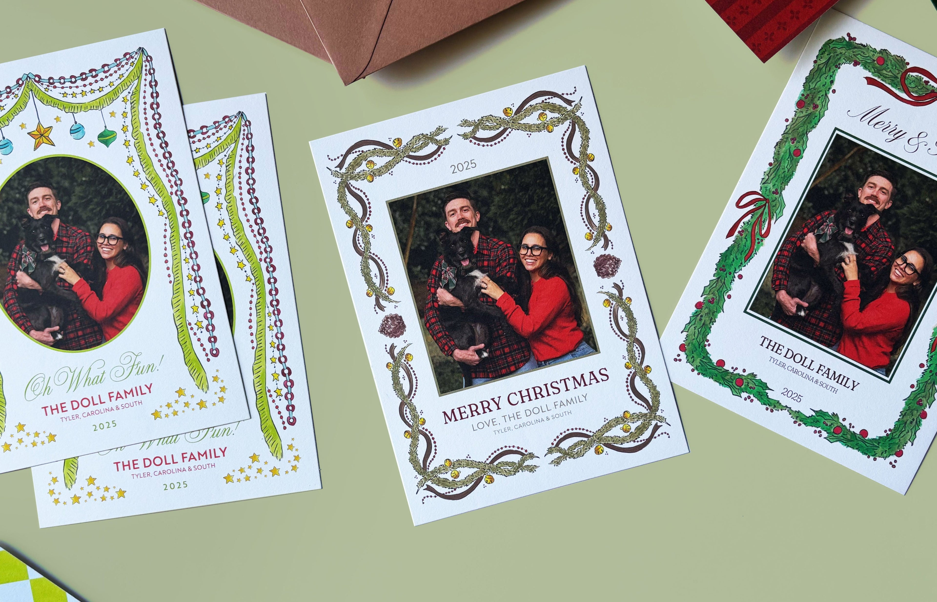 Spread the cheer! Our hand-drawn holiday cards are ready to make mailboxes merry. Please send all information and high resolution pictures to carolina@dollpaperco.com after you purchase your cards.