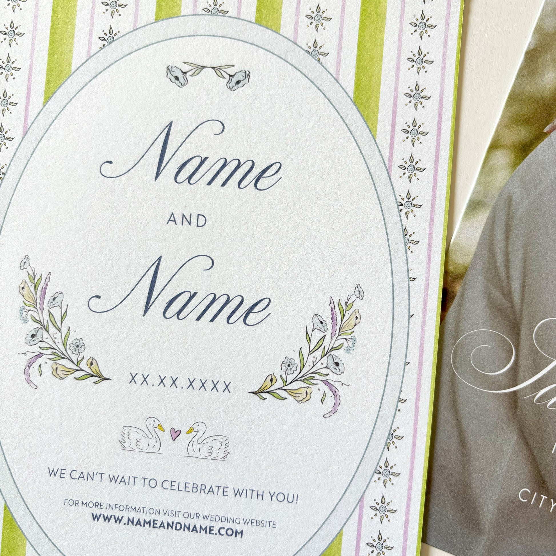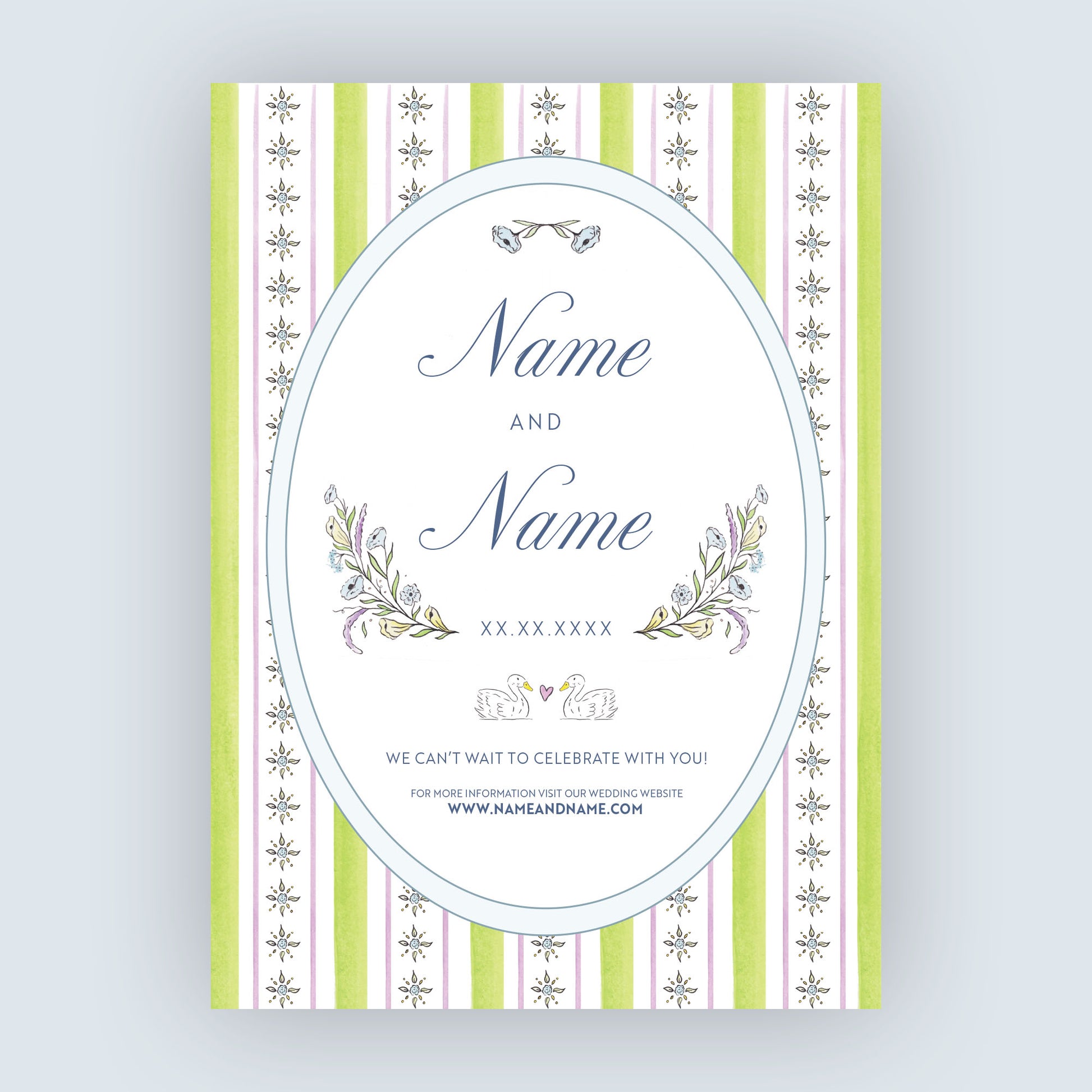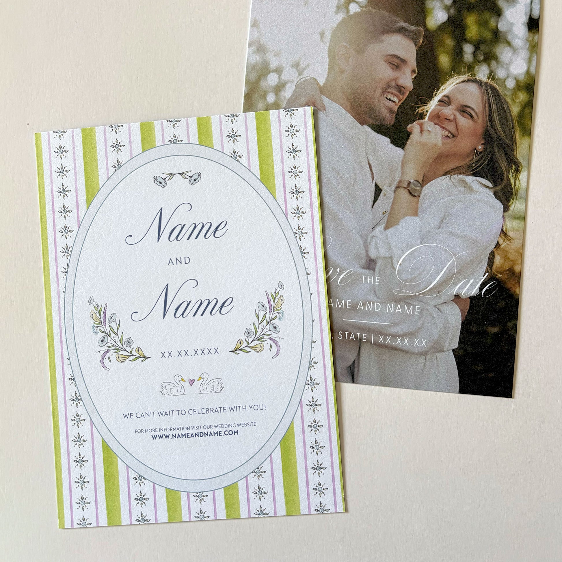 Hand-painted spring inspired Save The Date on 118lb bright white paper. Bring the feeling of the season to life through your wedding paper.