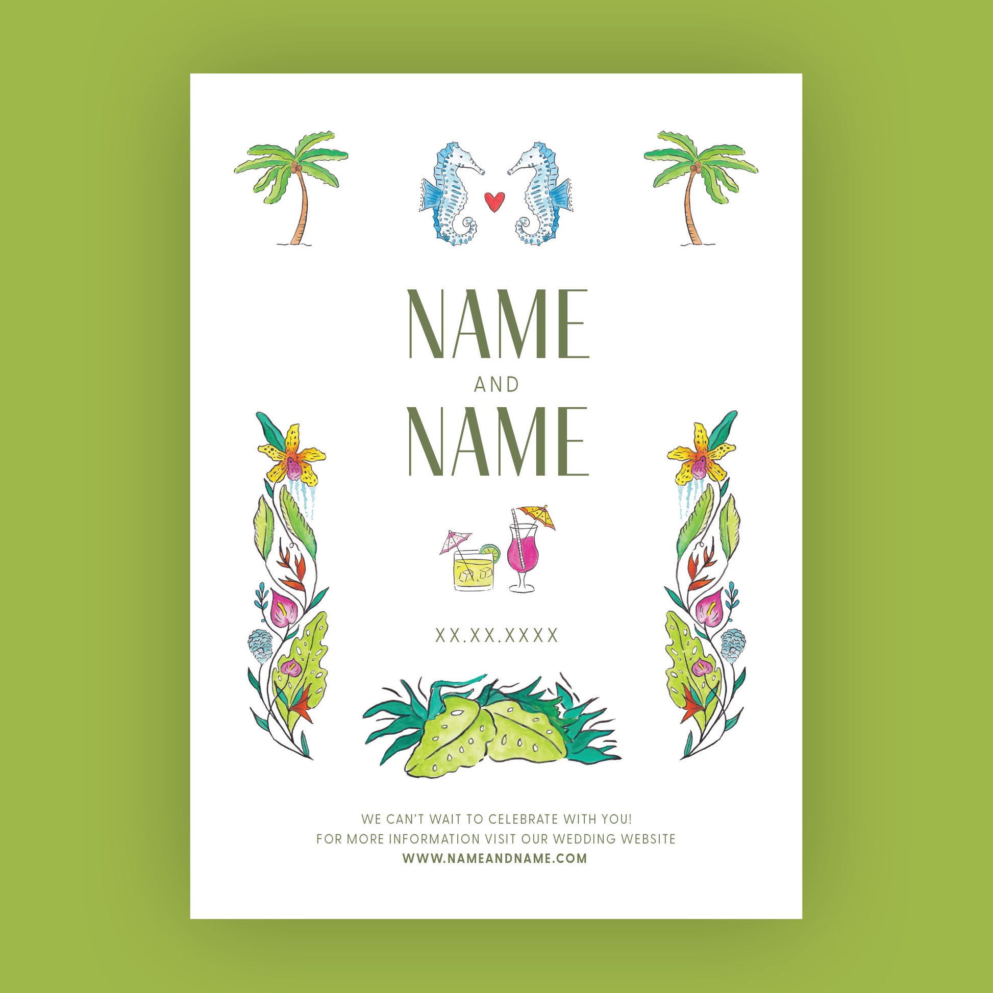 Hand-painted tropical inspired Save The Date on 118lb bright white paper. Bring the feeling of the season to life through your wedding paper.